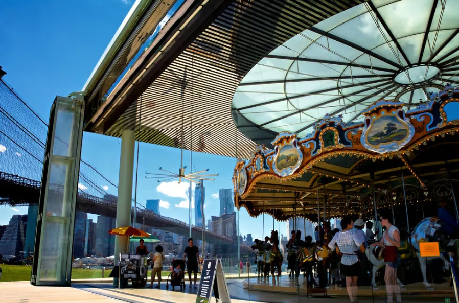 - Jane’s Carousel: Un capolavoro d’altri tempi: giostra del 1922 restaurata e protetta da una teca di vetro disegnata da Jean Nouvel. È romantica, poetica e molto amata anche dai fotografi.
