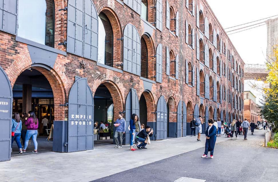 - Empire Stores: Gli ex magazzini ottocenteschi in mattoni ospitano oggi un moderno complesso con boutique, gallerie e spazi di coworking. Salendo sulla terrazza panoramica, potrai ammirare un panorama spettacolare sul ponte di Brooklyn e sullo skyline di Downtown Manhattan.
